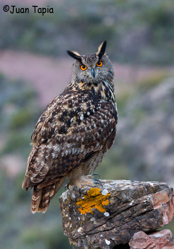 grande. Plumaje mimético rayado, largas orejas no visibles durante el vuelo.