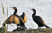 septiembre a marzo. Plumaje negro poco impermeable por lo que extiende sus alas